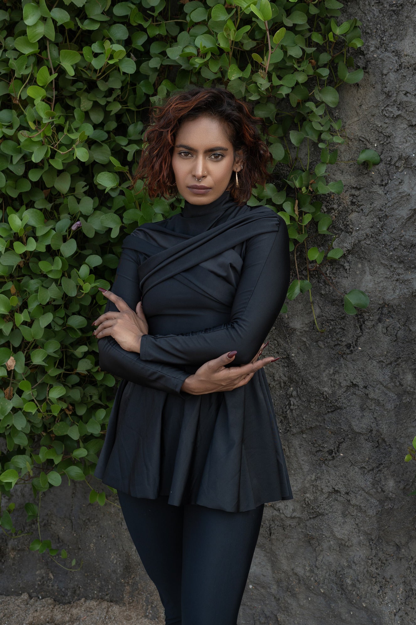 Introducing the Bijou Modest Swimsuit, designed for ladies who value full coverage and modesty. Featuring a stretchy waistband and full-length pants, this suit provides ultimate comfort. The flowy, free-spirited top, with unique criss-cross detailing and wave cloth accents, offers a flattering silhouette. With padded support and no sheerness, this suit is a fresh and fashionable take on modest swimwear.